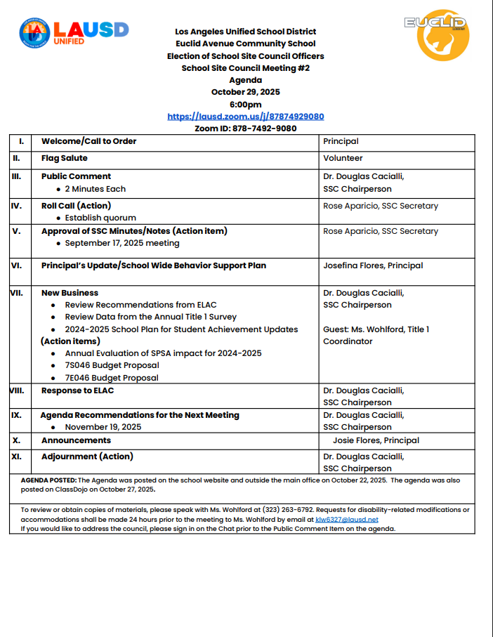 School Site Council Agenda 10-29-25