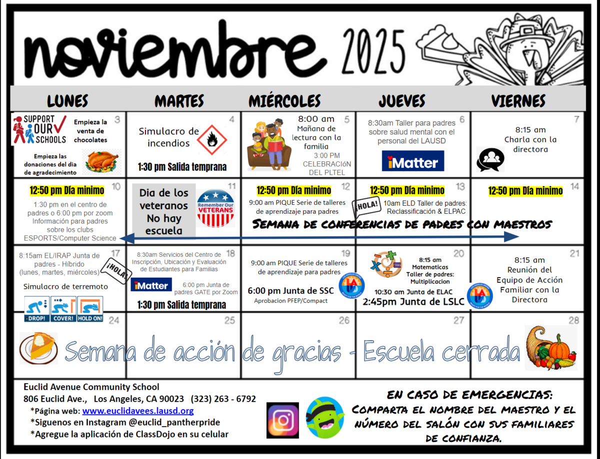 November Calendar / Calendario de noviembre